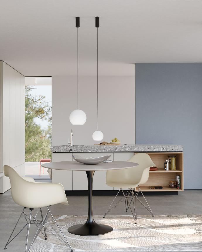Gestalten Sie die KOS Solo ganz nach Ihren Wünschen. Bestimmen Sie die gewünschte Größe der Glaskörper, wählen Sie Kabelfarbe und Oberfläche der Abhängung.